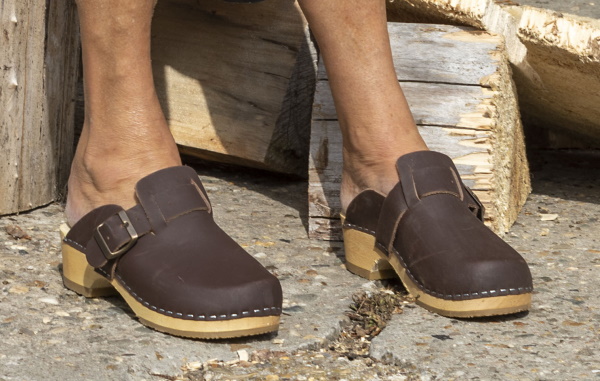 Schoenklompen met Range leer. Traditionele klompschoen. De kap met gesp, is van Juchtleer. De schoenklompen hebben een houten orthopedisch voetbed. Met een prima pasvorm. Om ook te dragen als je netjes gekleed bent. Ideaal voor een hoge, of lage wreef.